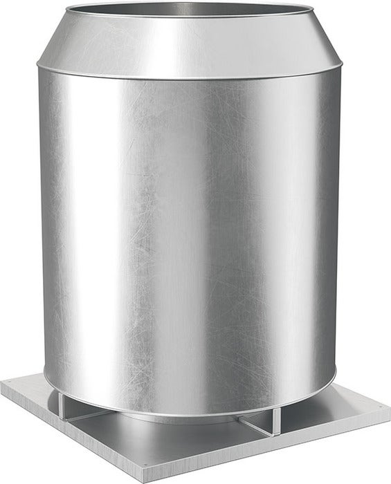 BRBA är en cirkulär avluftshuv för användning i komfort- och industrianläggningar. Konstruktionen ger en hög utloppshastighet som minskar risken för nedslag av eventuellt stoft och föroreningar.
