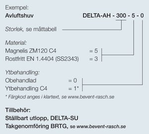 DELTA-AH är en avluftshuv för användning i komfort- och industrianläggningar. DELTA-AH är anpassad för lågt tryckfall i kombination med dokumenterad god vattenavskiljning. OBS! Ej längre tillgänglig i Varrmförzinkat & Aluzink.