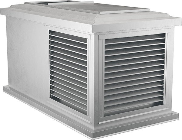 Kombihuv BRSK är en kombinerad ute- och avluftshuv för användning i komfort- och industrianläggningar. Den har en design som liknar en traditionell skorsten.