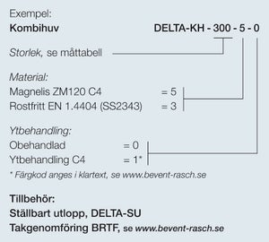 Kombihuv DELTA-KH är en kombinerad ute- och avluftshuv för användning i komfort- och industrianläggningar.