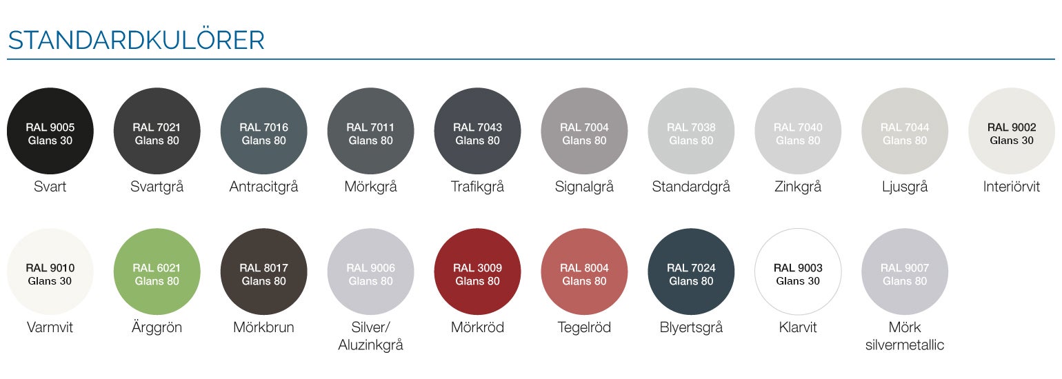 - Se våra standardkulörer i bild 2 ovan.
